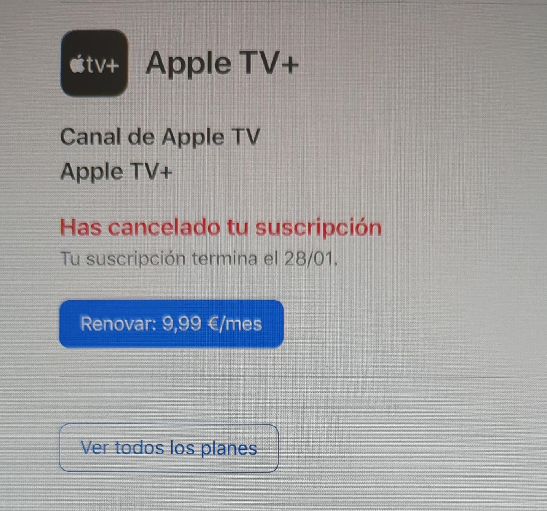 797 Baja en AppleTVmiércoles, 08 de enero de 2025  Esta mañana he dado de baja la suscripción mensual, 9,99€ a la buchaca. | #appleTV - #baja
