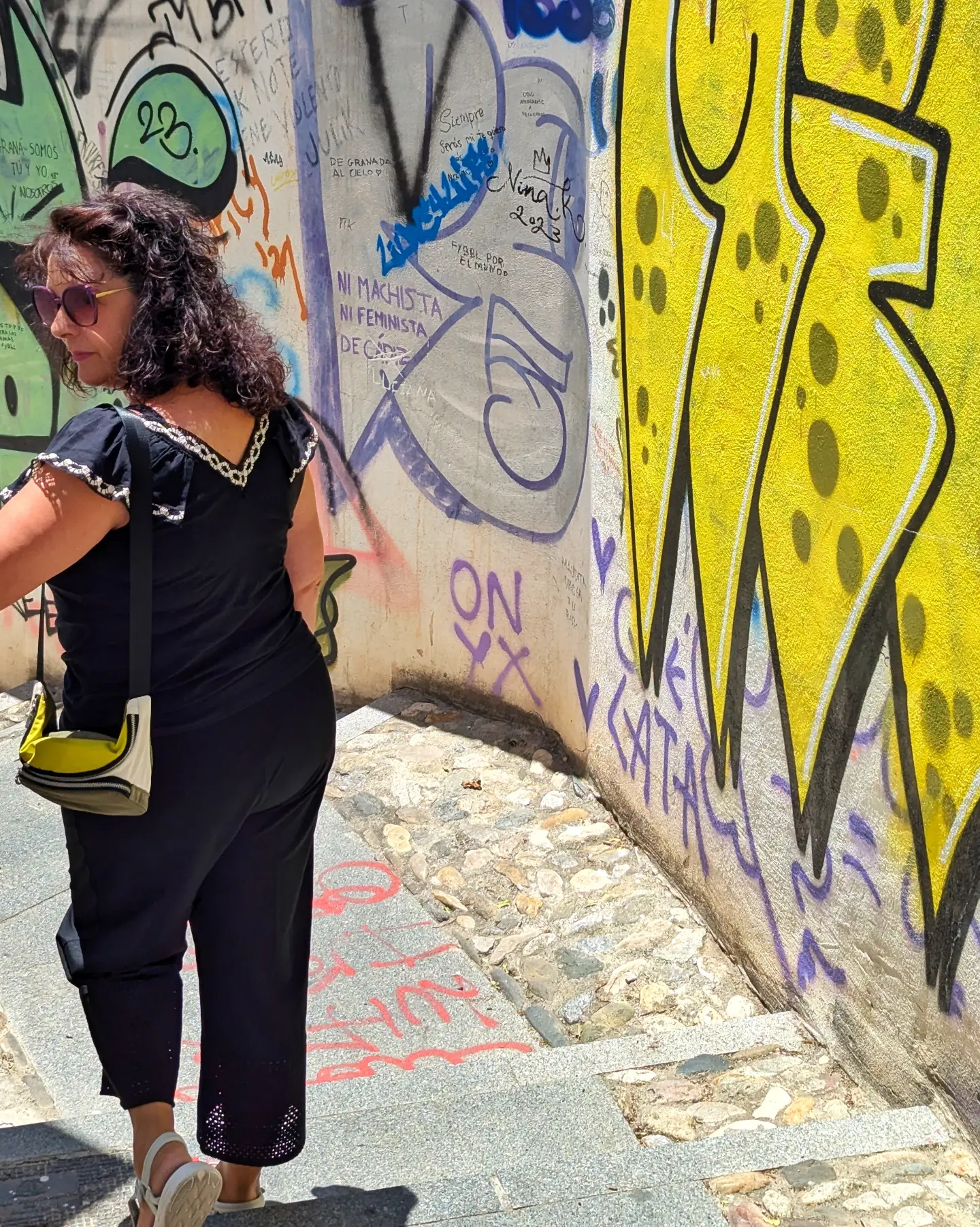 El plan era sencillo: nosotros pasábamos por Otura a recoger al famulio y poníamos rumbo al centro de Granada. Así se hizo. Dejé el coche en el aparcamiento de siempre, el Puerta Real. El día amenaza calor, pero a esa hora aún se camina sin agobios. Rebeca ha planeado subir al Albaicín por ese afán que lleva ella tan dentro de rememorar y revisitar; un afán que comparto, que incluso exagero. Nos lleva a una parada de microbuses que supongo ella habrá localizado en la red; pero yerra en el tiro, pues los del Albaicín salen de la Plaza Nueva (he preguntado a un conductor de un bus que estaba allá estacionado y así me lo ha indicado...). En la Plaza Nueva nos instalamos en un minibus que en unos minutos se peta. Arrancamos. Yo estoy disfrutando como disfruto yo: a tope. Bueno, todos disfrutamos. El conductor nos indica en una de las paradas que si deseamos ir al Mirador de San Nicolás que mejor bajemos; bajamos nosotros y un porrón de turistas. En el Mirador hay gente, no demasiada, y hay grupete gitaneando unas cancioncillas (pendiente subir video). Nos hacemos fotos y tal. Hay ganas de cerveza y tapa. Reculamos a la plaza. En la terraza del Kiki nos ponemos cómodos y nos triscamos las primeras Alhambras Verdes; ¿la tapa? arroz en modo paella, cremoso y con tropiezos; muy bien toda la experiencia, así que pedimos segunda ronda, como ha de ser. Segunda etapa: el Castaneda. Guio al personal por las callejuelas y plazuelas, buscando la mejor ruta que nos bajara a la calle Elvira. Así que por callejas y escalinatas descendemos en modo bastante abrupto y n... leer más | #2024orgiva - #famulio - #granada - #albaicin - #castaneda