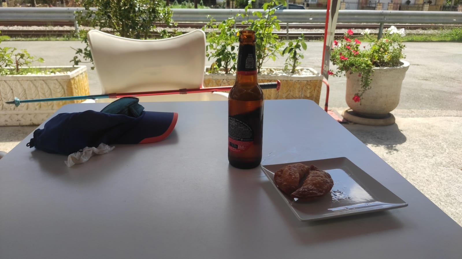A primera hora salgo a caminar por la parte de la Vía Verde que le gusta a Raquel. Tiro un montón de fotos y disfruto de la calma ambiente. Al llegar a Valterria opto por coger el sendero que gira a la izquierda y que termina un poco más allá de la Estación del Tren. De regreso a casa hago una parada en el bar de la Piscina y me como un pincho de tortilla con una 1906; una gozada, toda la terraza para mí, paz y relax.