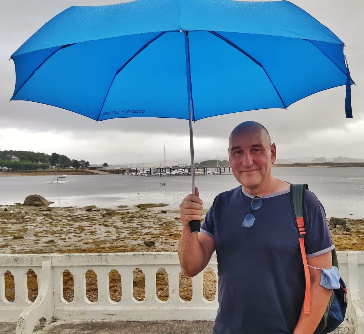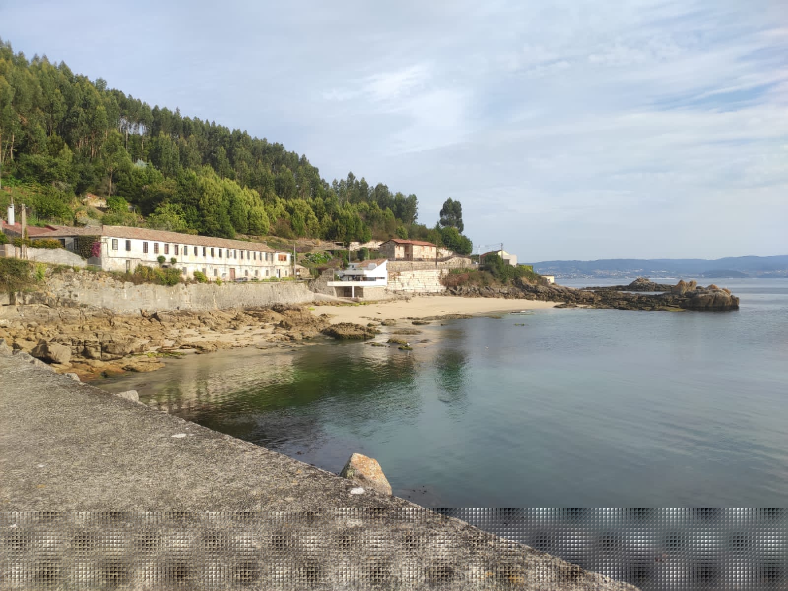 125 04-vacaciones2021 / Belusolunes, 06 de septiembre de 2021  Brazos en la terraza de ocho a nueve. Caminata hasta el puerto de Beluso y seguir por senderos bordeando la línea de costa, cruzar por lo alto de calas de arena y rocas, y en una de ellas, una hermosa, descalzarnos y chapotear un rato por la orilla. Tras el amago de baño continuamos por senderos hasta llegar al meollo de Beluso, buscamos en bar. Y lo encontramos: bar con terraza en el centro de Beluso. Allá nos tomamos unas tostadas con café. De regreso hacemos compras en el GADIS: lechuga, patatas, chuletas y leche. Preparamos chuletada y nos la comemos en la terraza. Luego el apalanque. Al anochecer el cielo se cubrió de nubes negras, luego comenzaron a caer goterones de lluvia tormentosa, brillaron relámpagos y sonaron truenos. Nos acuartelamos firmemente en el ático y nos pusimos a ver tele: Candice Renoir. Varios capítulos. Y ya. | #2021vacaciones - #bueu - #beluso - #chuletas - #caminata - #tormenta - #lluvia - #serie - #candicerenoir