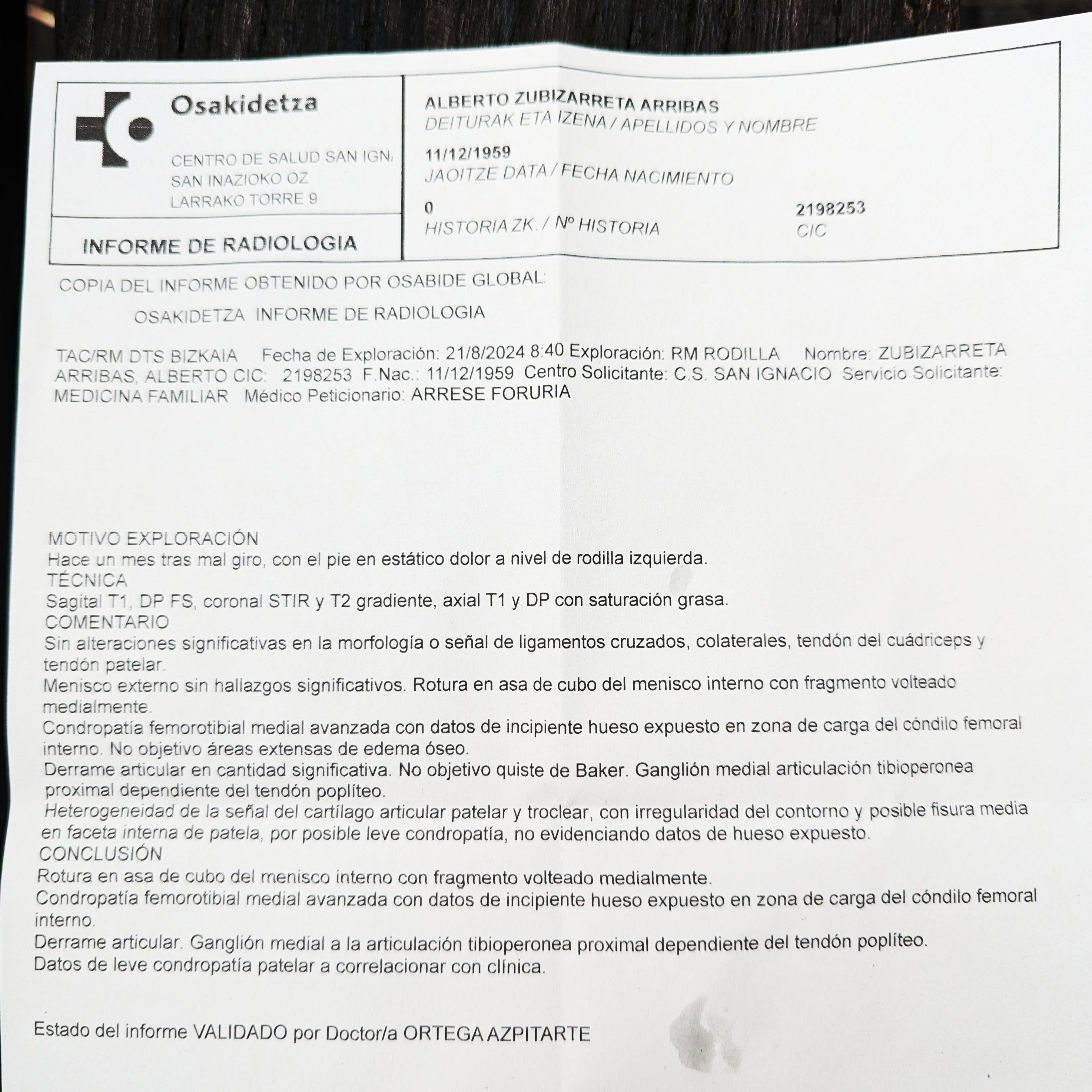 636 Un viernes repleto de actividadviernes, 30 de agosto de 2024  «Un viernes repleto de actividad», responde a la perfección a la definición del sustantivo "título". A partir del punto de arranque las posibilidades se tornan muy dispersas y opcionales; posibles. Mi pensamiento tiende al ahorro de combustible, lo que se suele denominar como "pereza" o "vagancia" o ambos, ambos precisos pero limitados; da igual. Suele pasarme que en el arranque, como he dicho, me dirijo con determinación hacia una opción esquemática, y sí, suele pasarme que al cabo de un tecleado cansino de letras cierta fluidez de ideas y de ganas se va abriendo paso desde alguna región desconocida de mi mente (todas los son), y sí, suele pasarme que la redacción adquiere un tono de verborrea y que de mis dedos brota un caudal de palabrería que desemboca en párrafos intrincados; sensaciones que son bastante habituales, que han perdido la capacidad para la sorpresa. Sí, suele pasarme que hablo mucho y dejo lo importante en las zonas de silencio, en lo recóndito de mi mente. La semana pasada, el día que me hicieron la resonancia me comentaron que dejara pasar una semana para pedir la cita con mi médico; elegí el viernes 30 a las 10:10 para la visita y decidí incluir una entrada alarmada para no olvidarme de ello. Sí, lo que lleva alarma es por algo, en este caso también. Me levanto pronto para tener tiempo de sobra y poder encajar sin esfuerzo todas las pequeñas cosas que suelo hacer al levantar; y tener tiempo como para ir Sani dando un garbeo por la ría, como tantas veces. El tiempo es perfecto para caminar. Poco antes del edificio de IDOM observo que se acerca trotando mi primo Koldo, el deportista bajito, el que habita en la casa de mis padres... No me apetece entrar en muchos detalles, mi pensamiento se inunda de sentimientos y emociones, recuerdos y discursos innecesarios. Prefiero dejarlo pasar. La pausa koldoreña mi roba el buen margen de tiempo del que disponía y tengo que acelerar para llegar antes de las 10:10; y lo consigo: son las 10:05 ... leer más | #ambulatorio - #leticia - #resonancia - #informe - #menisco - #deusto - #mercadona - #restaurante - #italiano - #casaleotta - #alhondiga - #gintoni - #exposicion - #arbolnegro - #cine - #golem - #elcondedemontecristo - #cervezas - #terraza - #fieston