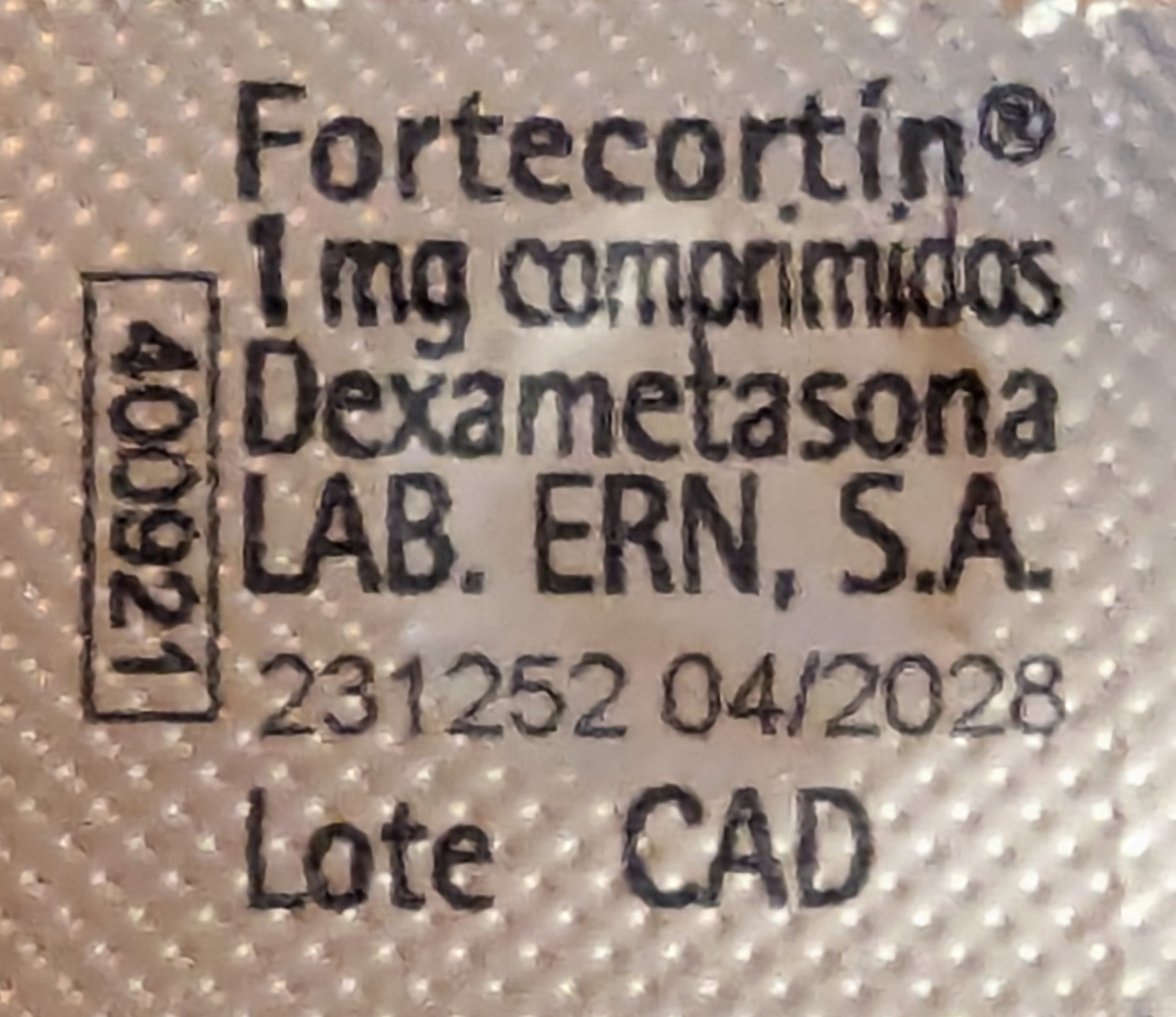 Continuo con la Amoxicilina, también he tomado un par de Ibruprofenos, y me he tragado dos pastillas pequeñarras de Fortecortín que me ha dado Susana (imagino que son corticoides poderosos...).
