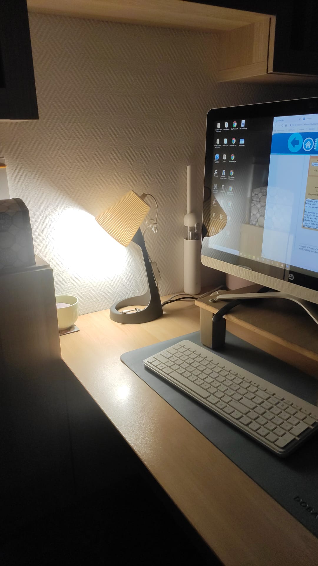Ha quedado para comer con su hermana, en la calle Diputación, después de vacunarse. Todo en orden. Yo he pasado el día ocupándome de mis cosas: uñas pies, uñas manos. Además he colocado una lámpara de IKEA que ha llegado esta mañana. Y para ello he recolocado todos los cables y enchufes del escritorio. Me ha quedado muy bien. | #meta - #vacuna - #raquel - #covid - #escritorio - #lampara