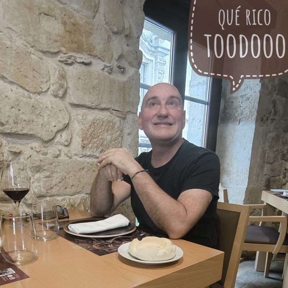 945 Vacaciones en arranque salmantinomartes, 29 de octubre de 2024 .jpg) Inicio vacacional.- Poco después de las nueve y media ya estamos circulando intensamente nerviosos por la AP-68. Antes de salir he preparado un par de suculentos sándwiches (tortilla francesa, jamón york, lechuga, tomate y mayonesa) para alimentarnos durante el viaje a Salamanca. Una primera parada en un área, cerca de Pancorbo, para tomar un café con leche; y una segunda parada en el aparcamiento de un hotel potroso para comer el almuerzo itinerante. El tiempo es fresco, se agradece que no sea extremo en ninguno de los sentidos. Llegamos a Salamanca a eso de las dos y poco. Aparcamos en el Parking Campillo y arrastrando el equipaje nos instalamos en el apartamento 3B de los Vega Gaiarooms. No es el mismo de la vez anterior (estuvimos en el 2C, uno de los que hacen esquina y tal), pero está muy bien, poco equipado pero bien. Lo de "poco equipado" lo digo porque apenas hay vajilla, la iluminación es muy justa y todo está muy a los mínimos, pero, repito, bien. Y a comer al Vida & Comida. Habíamos hecho una reserva para las tres y media, pero nos presentamos antes de las tres; aún así nos acomodan en una mesa estupenda, nos sirven un par de cañas y hojeamos, nunca mejor dicho, la carta periódica, jeje. Optamos por la opción de tres platos, dos verdes y uno rojo. Raquel: ravioli relleno de txangurro, puerros a la brasa y carrilleras super ricas; de postre una cosa rica con espuma de algo. Yo: ravioli también, velo de gamba, merluza en tempura y de postre ensalada de frutas. Regamos todo ello con un Reserva de los Arribes y rematamos con una copita de Moscatel. 100€. Con la tripa llena y el corazón ardiente nos damos un voltio por las maravillosas calles de la Salamanca de areniscas y blasones; joder qué cursi, jajaja. Y en fin, en el Carrefour de frente al apartamento compramos unos básicos para cenar y desayunar. Huevos, café en cápsulas Tassimo, leche, grisinis, aceite y una litrona. Con esos elementos y con un pepino y un tomate que traj... leer más | #2024tartessos - #2024salamanca - #apartamentos - #gaiarooms - #restaurante - #vida&comida - #2024DANA
