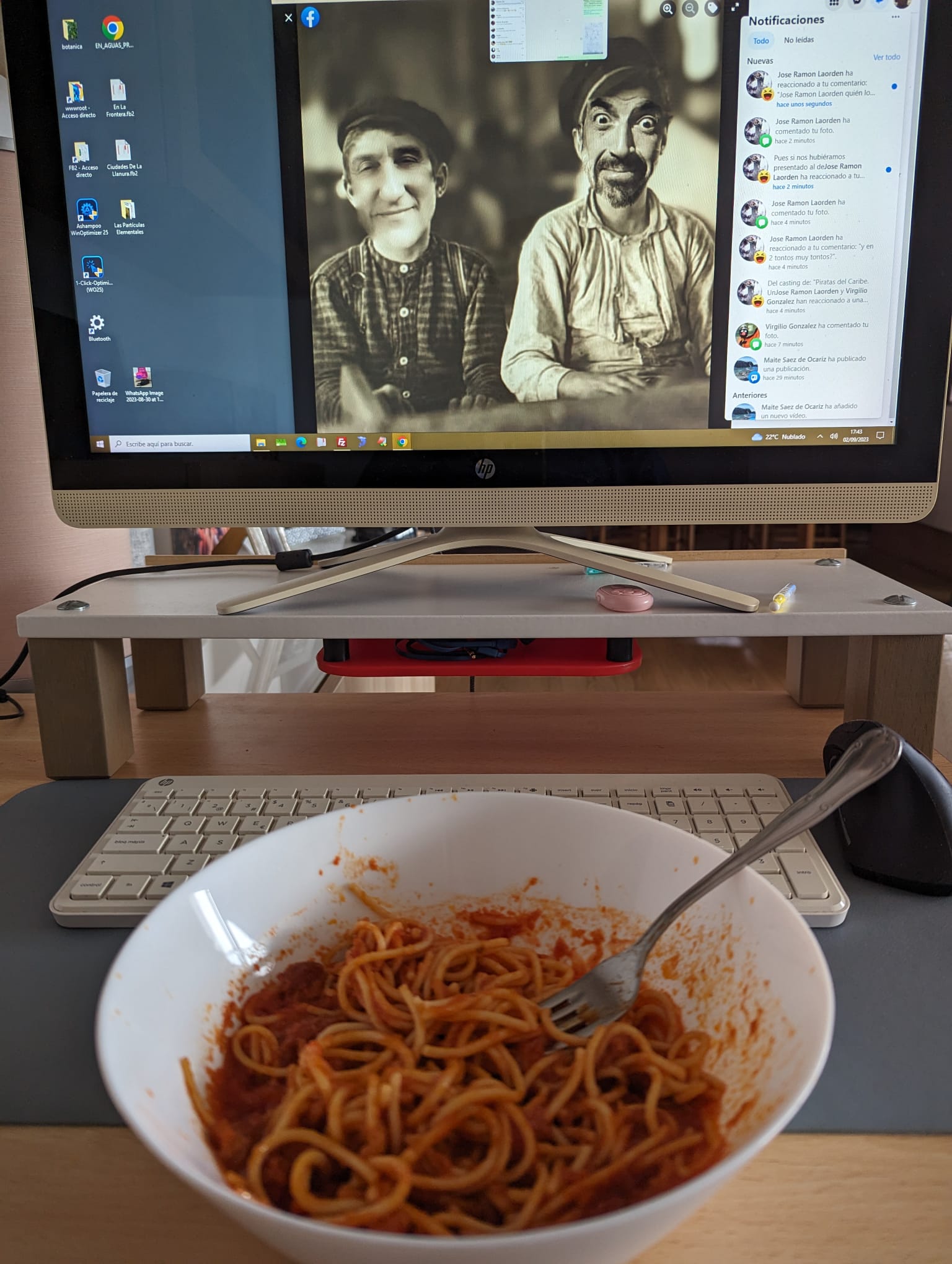 Ha resultado bastante decepcionante. Este restaurante queda borrado de mis posibles en Bilbao. Yo he comido bastante; Raquel prácticamente nada, por lo que le he preparado unos espaguetis con tomate y chorizo -menos mal que el jueves dejé hecho tomate-.