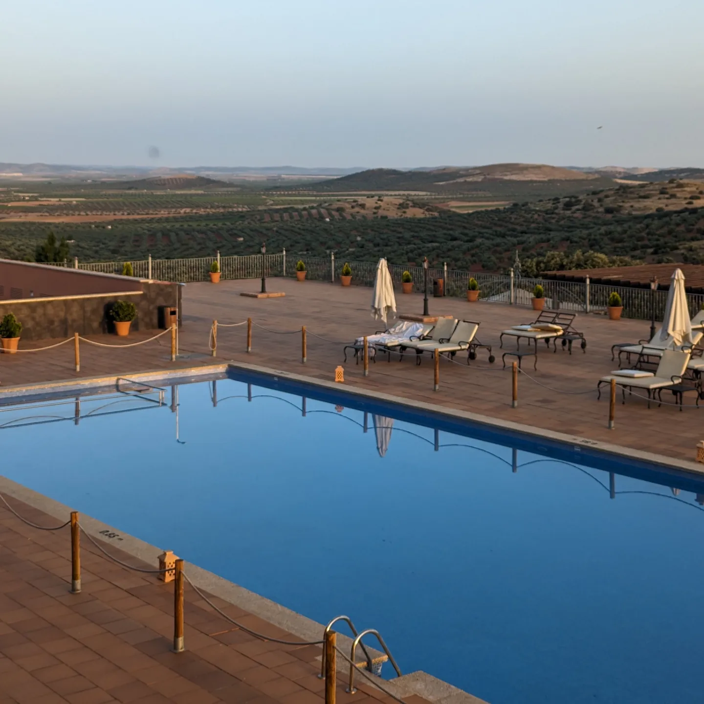 650 Día 1 - Del Palomar a La Camineradomingo, 26 de mayo de 2024 .jpg) Son las 8:30 cuando comenzamos viaje. El coche a rebosar, pero perfectamente acoplado en todas sus esquinas. Para picar algo en el viaje ayer preparé un pastel de bonito de los míos, de manera que la primera parada la hacemos en una P pasado Burgos; al salir del coche nos sacude en los morros una temperatura más fresca de lo esperado, se me han quedado las cachas ateridas, jajaja. Siguiente parada técnica: Hotel Mirasierra en Santo Tomé del Puerto. Son las doce y pico y tenemos ya un apetito interesante. Caen un par de pinchos de tortilla y unas CocaColas Zero. Cigarrito y a seguir ruta. Siguiente parada: gasolinera de Seseña. Repostamos diesel, compramos CocaCola Zero y nos terminamos el resto del pastel. Siguiente parada: Hotel El Hidalgo (anécdota con el Maps: situa el hotel en mitad de la A4, donde no procede ¿?); una cervecita y unas chips; el establecimiento está de capa caída total, qué pena. El calor ya está instalado en nuestra piel, el verano ya se intuye, jeje. Etapa final: Hotel ***** La Caminera, en Torrenueva. Habitación 114. Un lujo de lugar, es una auténtica pasada. Nos instalamos y de la misma bajamos a la piscina a descansar y disfrutar. Yo me he dado dos bañitos deliciosos. Nos plimplamos unas cañas y unas almendras y a las casi las siete bajamos al SPA. Todos los chorros para nosotros solitos; más a gusto es imposible. Finalizamos la jornada cenando en el Restaurante El Prado, con vistas al anochecer sobre la piscina y los campos de olivos y los viñedos... ¡¡¡Qué pasada!!! Tomate aliñado, pechuga de pollo a baja temperatura y bacalao confitado. Cerramos el día con un merecido descanso en esa maravillosa 114. Mañana toca viajar a la Alpujarra... | #2024orgiva - #elhidalgo - #seseña - #torrenueva - #hotel - #lacaminera