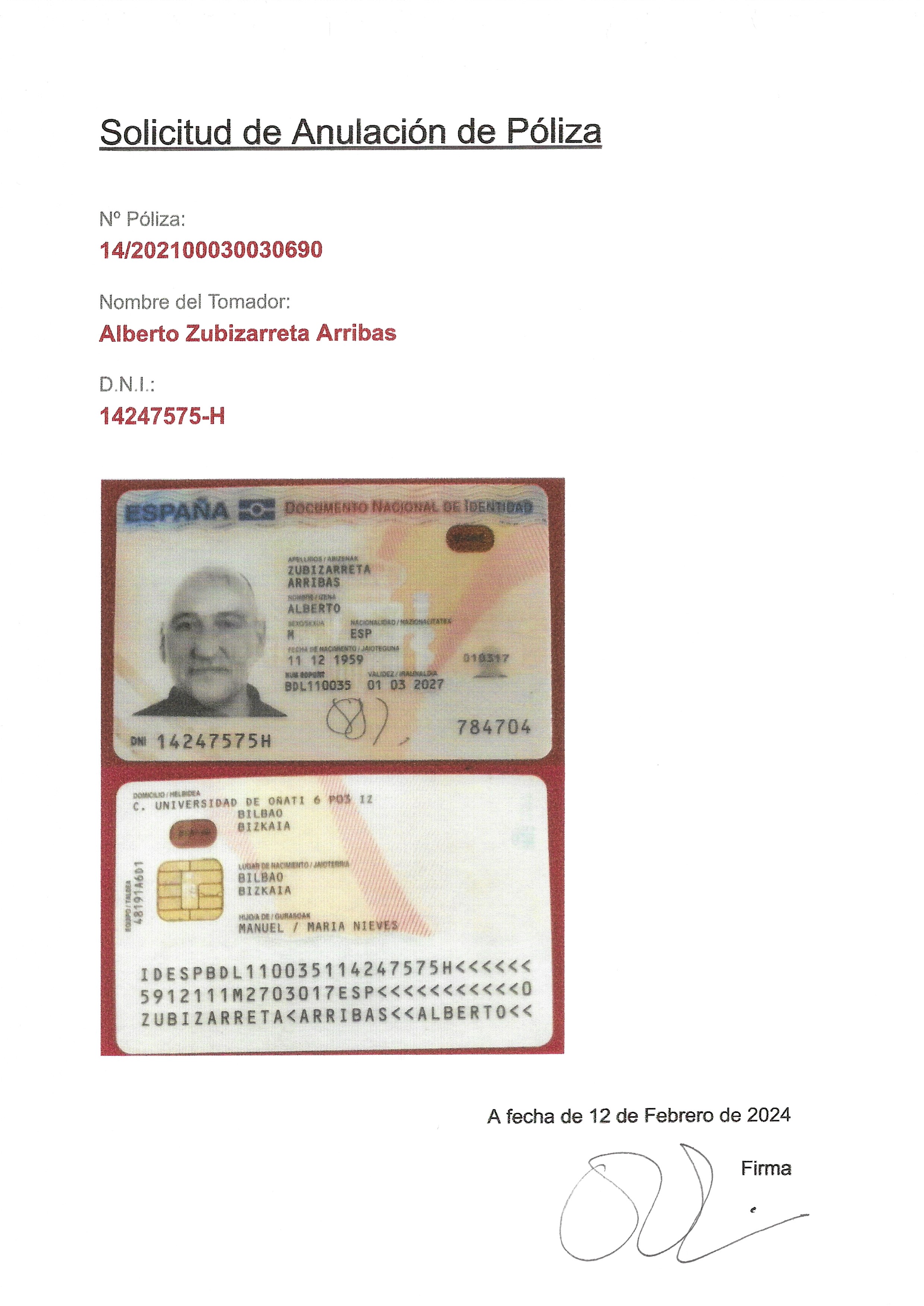 Solicito la anulación de la póliza que tengo contratada con vds.