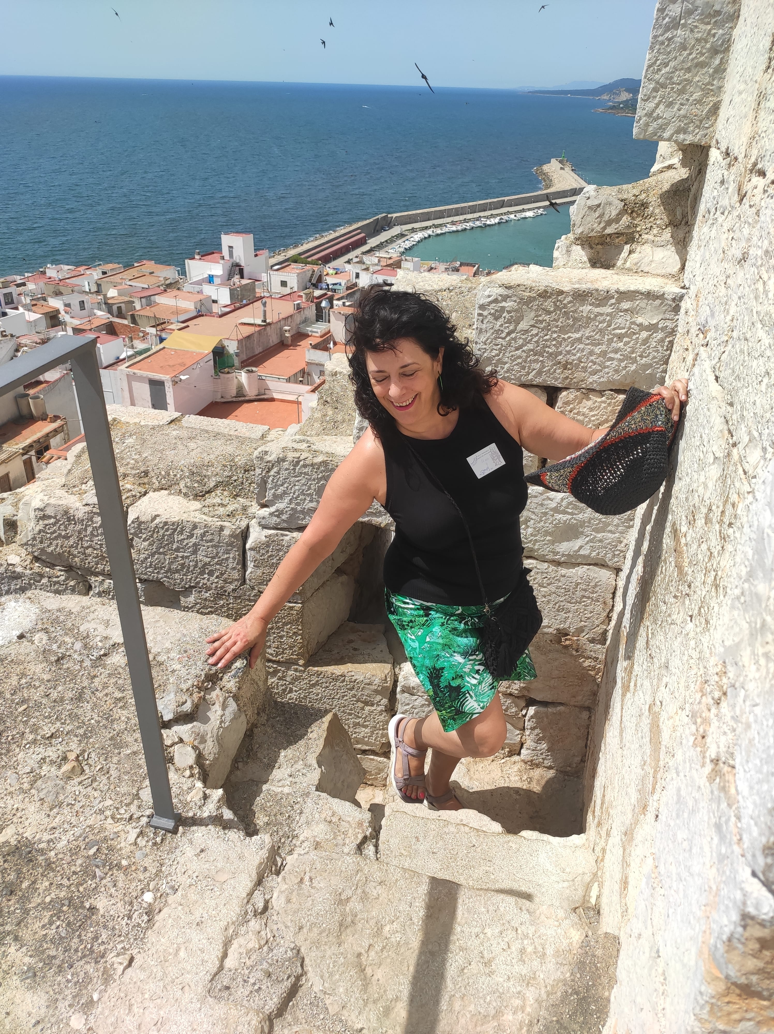 11 Benicassim 13 - Peñíscolamiércoles, 15 de junio de 2022  Hoy toca salida de Benicassim, toca coche, toca... excursión. Hemos decidido ir a Peñíscola, por fin. La idea está desde los orígenes del plan de pasar unos días en Benicassim. Hay como dos o tres excursiones básicas: las cuevas de Vall d´Uxó, el Desierto de las Palmas y el pueblo viejo de Peñíscola y su castillo. Así que a primera hora, a eso de las nueve nos ponemos en marcha con destino a Peñíscola. Llegamos sin contratiempos, por la AP-7, y aparcamos en la zona del istmo; un pequeño lio con la cosa de poner OTA, las monedas, etc; pero bien, perfecto. Y visitar la zona amurallada. El pueblo es muy turístico, hay tiendas y restaurantes con terraza por todos lados. En los días previos estuve fisgando el pueblo desde el Maps, buscando la ubicación de los restaurantes que yo recordaba que tenían sus terrazas en la muralla, con vistas al mar; muy típicos. Me quedé con el nombre de uno, el Altamira. De manera que he procurado que la ascensión hacia el castillo la hiciéramos por la calle en la que están los restaurantes a los que había echado el ojo. Y bingo: el Altamira, allí está. Hago una reserva para las dos y seguimos callejeando con un tema atado y bien atado, el tema esencial, el papeo guay. Llegamos al Castillo y compramos entradas para visita con guía; a mí me hacen descuento por mayor de 60 años, ¡¡¡yuju!!!. Y a visitar. Nos toca un grupo variopinto, con gente mayor, joven, unos de Burgos; y una guía llamada Ana, bastante profesional, con carácter. La visita ha durado casi la hora y nos ha entretenido y divertido. Lo pasamos bien en esas movidas; yo enredo y Raquel observa divertida, aunque hoy he enredado casi nada. Al terminar la visita hemos echado un ojo a una Iglesia que hay adosada al Castillo. Y callejeando callejeando un camarero levemente orondo nos ha hecho la clásica invitación a tomar algo en su terraza; calor, sed, qué más?, a sentar tocan. El garito de llama "El Raconet de Ca Deu", y de entrada he de decir que merece la pen... leer más | #202206benicassim - #peñiscola