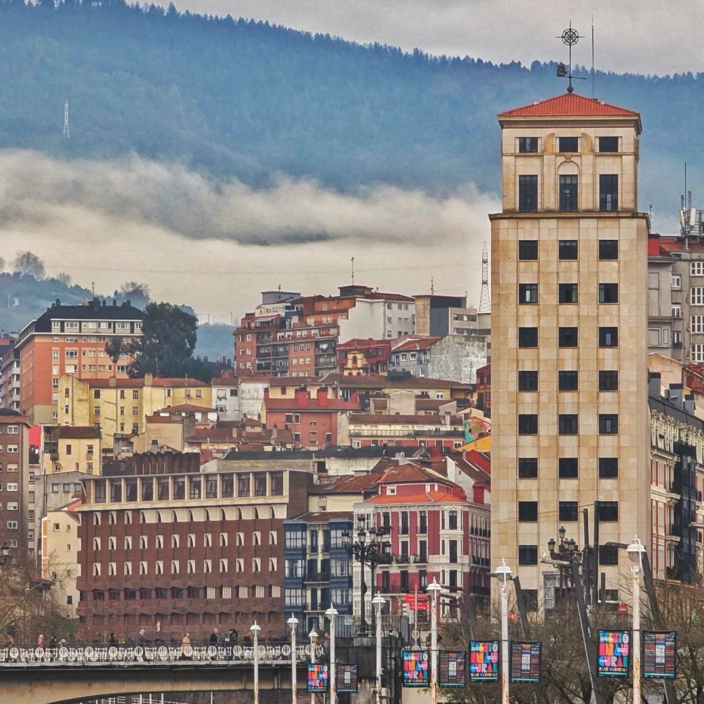 49 Paseando por Bilbao con D.Calabacín y Da.Coliflormartes, 16 de enero de 2024  Otro día entregado al puré y a los alimentos endebles. Lo que sea por evitar a mi cerebro los estímulos dolorosos y para que el registro de la memoria no se sature de elementos oscuros. Hoy la cosa va de puré de calabacín con picatostes de coliflor hervida; y hay que ver qué rico me ha quedado, para chuparse los dedos, pero con mucho tacto, que la sensibilidad siempre es bienvenida. Antes de los momentos alquímicos, antes de ese rato de delantales y tabletas vaporizadas, antes he recorrido sin rumbo predefinido ciertas calles de Bilbao que susurraban mi nombre y a las que he inmortalizado en un buen puñado de unos y ceros -dejaré testimonio-. El único repostaje muscular lo he ejecutado en la planta 1 del Decathlon, a donde he acudido atraído por la vana esperanza de encontrar unas botas de monte molonas; un también vano intento. Pero sin más, o qué?. Lo de las botas tiene que ver con que mañana me reincorporo a las actividades miercoleras con los Mendizaleak. Hay plan y he levantado el dedo. Jon ha hecho su propuesta: volver a las cumbres que rodean Nabárniz, al Illunzar en concreto. Y no te jode que justo un día antes me llegó correo de academia.edu con un PDF que trata de los trabajos arqueológicos en esa cumbre -poblamiento de la Edad de Hierro o anterior, y campamento romano-. Estas casualidades le dan la chispa a la vida; no explican nada, pero tienen su aquel, hacen que la magia parezca posible, durante un breve destello, y ronde alrededor de nuestras mentes y de nuestra fantasía moribunda. Je.