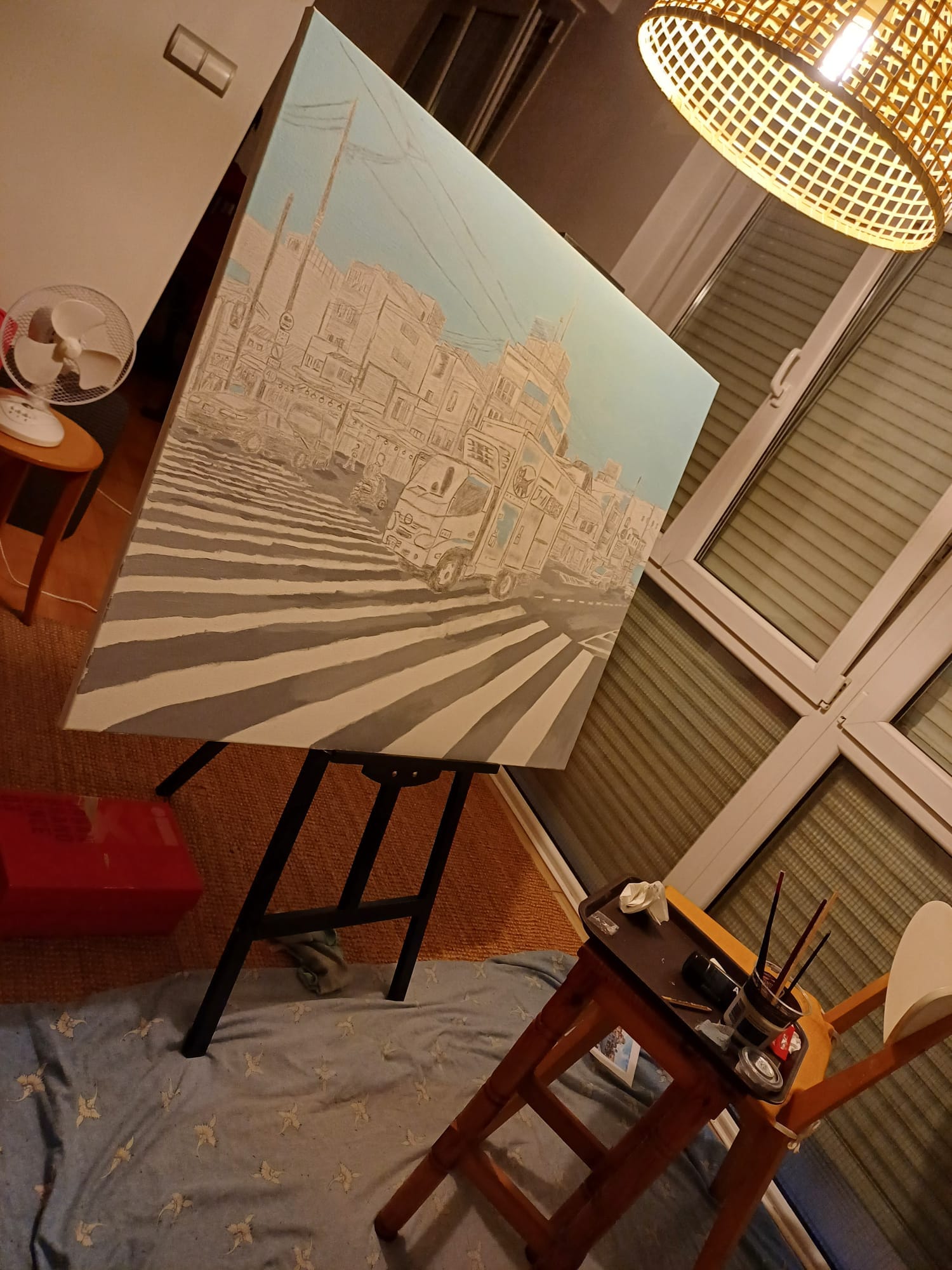 Así que al finalizar la sesión de piernas y después de cortarme el pelo, ducharme y tender una colada, he salido con mi macuto térmico colgado del hombro con la idea de dar un garbeo relajado, sin pasarme de la raya como hice el lunes y el martes y que me dejaron la pata izquierda dolorida y quejosa. Cuando me dispongo a salir por la puerta suena el timbre del automático: es Tachón que viene a recoger un caballete que compró por Amazon y que puso nuestra dirección para la recogida, por si él no estaba, ya que se va el lunes a Barcelona a pasar unos días con Marta, Mikel y los peques.
