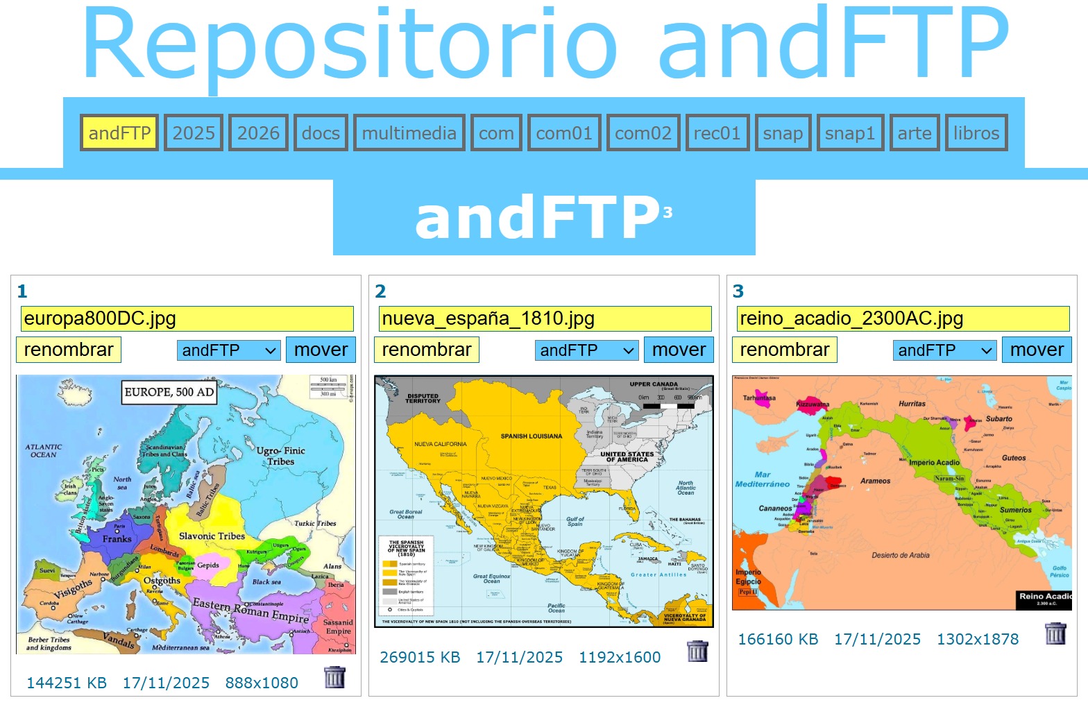115 filesFTP.asp - 2ºdomingo, 23 de noviembre de 2025  Esta página está en permanente mejora. Durante la tarde me he dedicado en cuerpo y alma a pulir el código, a eliminar líneas innecesarias, fundamentalmente las marcadas "en verde", a salir del embrollo que suelo montar cuando manejo variables de sesión y variables sencillas, a causa del propio desarrollo del código para seguir el ritmo a las innovaciones que lentamente voy insertando en el manejo y en lo visual. En estos momentos la maquinaria interior funciona con suavidad, perfección y ausencia de bugs. Las últimas prestaciones añadidas giran entorno al formulario general. He incorporado la opción «copiar», el borrado, la lista desplegable en la que aparecen las carpetas que aglutino en una matriz; en fin, y a la par tocando y retocando los colores, los tamaños, etc, lo visual, lo usual. | #andFTP - #repositorio