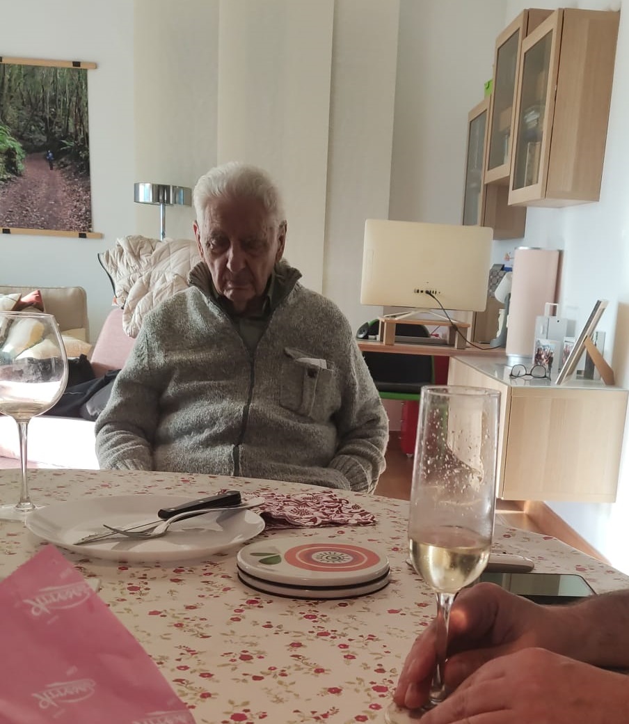 4 Tremendo día el de ayer...sábado, 12 de febrero de 2022  Mañana por Algorta, Getxo, Batzoki, etc Metro en Ibarbengoa. Comida en casa con Esther, Jorge, Raquel y yo. Ensaladilla, anchoas, jamón, pencas rellenas, presa a la plancha con patatas al horno. Y cuando íbamos a empezar con la presa... Jesús llama: me estoy muriendo. Raquel sale disparada y regresa con él. Allá en la foto se le ve, con pinta de arrepentido y tal. Nos trae la pasta que tenía ahorrada para irse a Málaga: 2300€. Y bueno, se dedica a hacer como que está arrepentidísimo de todo. Le cae un chaparrón tras otro, y los encaja de puta madre, porque lo que en realidad busca es el ser readmitido en la familia. Raquel le pone un café y le da un pastel, y se queda más feliz que la hostia. Pero al poco le decimos que ya, que se vaya a su casa y que descanse y que se dedique a sus cosas, a lo que sea. Pero el día no termina ahí. Poco antes de la medianoche nos toca el timbre del videoportero balbuciendo incoherencias, pero no le abrimos, se la lía a Aintzane, se la lía a Ima y es Ima la que le lleva a casa y le hace acostarse... | #joshua - #algorta - #batzoki