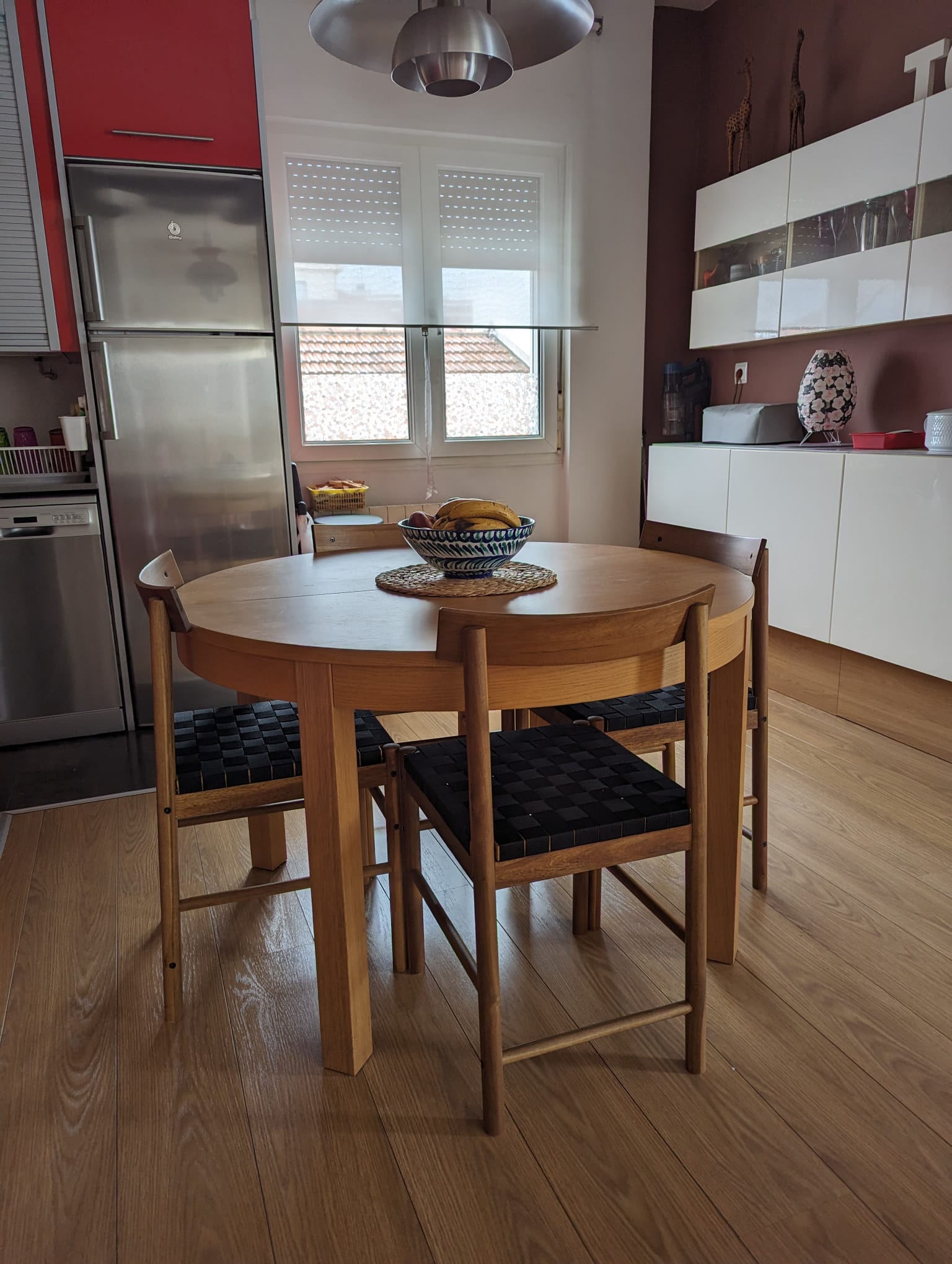 Con el aire acondicionado a toda caña en casa daba gusto estar, no como en la calle, en donde el bochorno cubría de una fina pátina de sudor mi apolíneo cuerpo. Y después de dar cuenta del pollo y de que Raquel se apalancara en la cama a ver la tele y descansar, yo me dispongo a montar las 4 sillas que aún reposaban en sus lindas cajas de cartón con forma de hache minúscula -h-. Sin darme una pausa bajo todos los cartones a la basura y las 4 sillas obsoletas -éstas fijo que no han durado ni un suspiro, ahí, junto a los contenedores de colores-. Listo, las sillas alrededor de la mesa redonda quedan como anillo al dedo: ¡¡¡somos unos hachas del interiorismo!!!.
