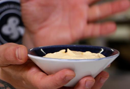 Una vez comprobada que la textura está a nuestro gusto (si no es así añadiremos más agua) colocamos la mayonesa en un bol.