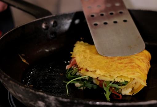 Cuando veamos que ya se separan un poco los bordes de la sartén le damos la vuelta (puedes hacerlo con las manos) y dejamos que se cocine la otra parte.